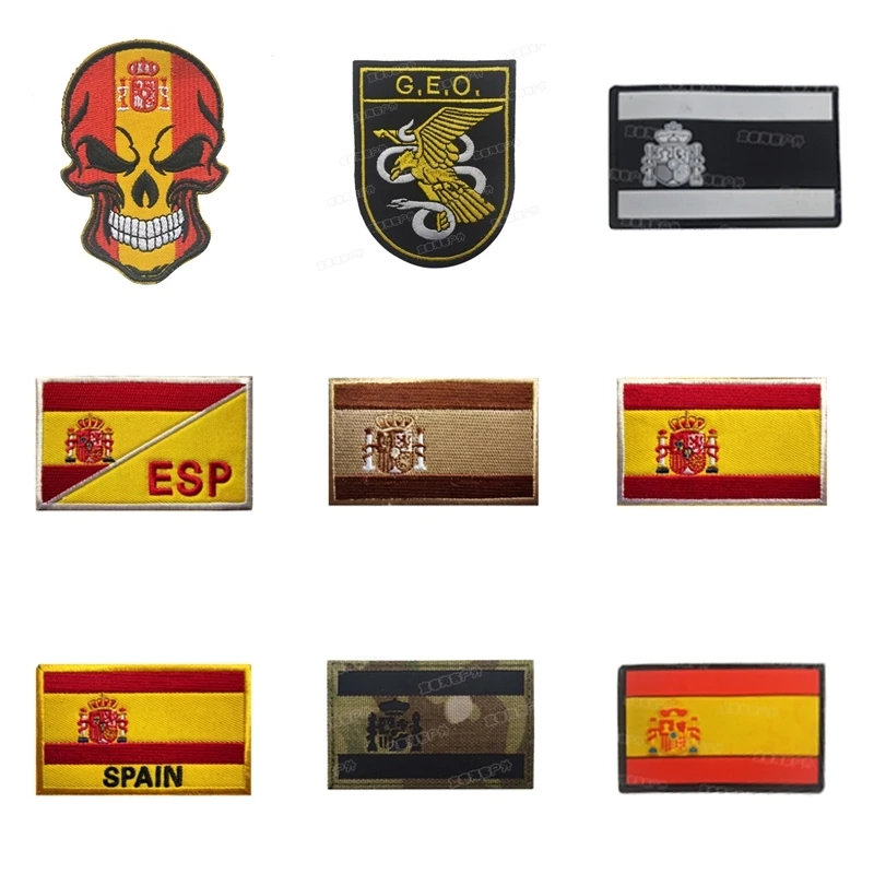 1 шт., Испанский флаг, вышитые нашивки, тактический военный патч, эмблема череп, Аппликации, испанские флаги, резиновые бейджи ПВХ, Policia GEO