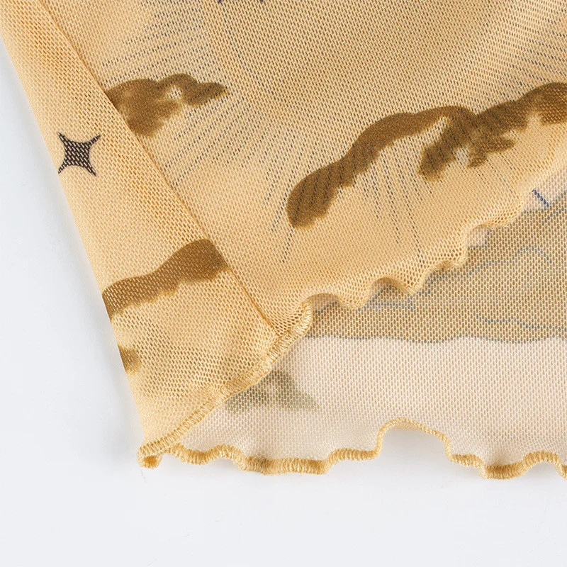 Футболка женская сетчатая, прозрачная, с длинным рукавом и принтом,...