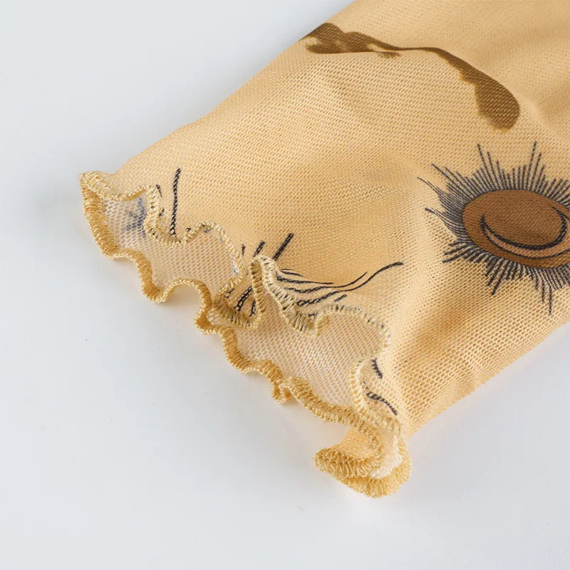 Футболка женская прозрачная сетчатая, с длинным рукавом и принтом, ...