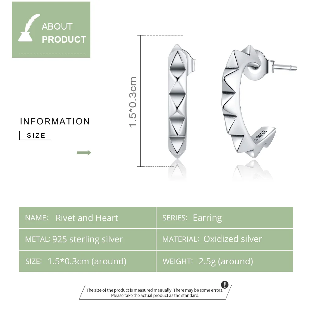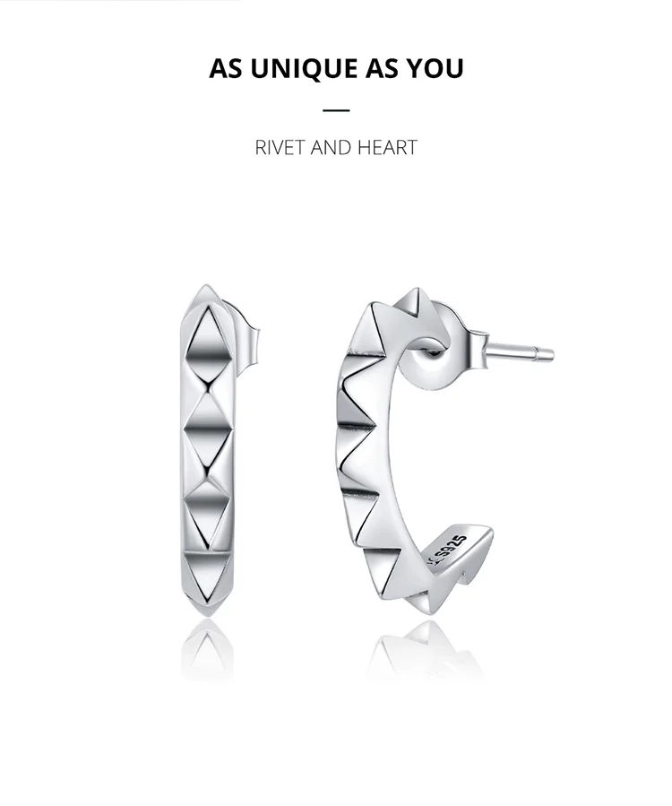 Женские серьги-гвоздики из серебра 925 пробы, с заклепками, ECE903