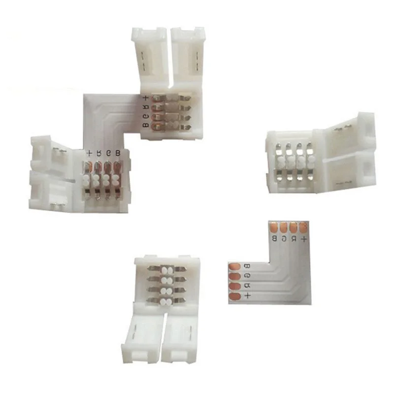 5 шт. 10 мм 4-контактный L-образный светодиодный разъем rgb для подключения углов прямоугольный 10 мм 5050 28353528 RGB светодиодная лента