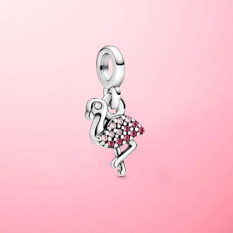 Подходят для оригинальных браслетов Pamura Me, серебро 925 пробы, мой Розовый фламинго, подвески, бусины, модные DIY ювелирные изделия, подарок
