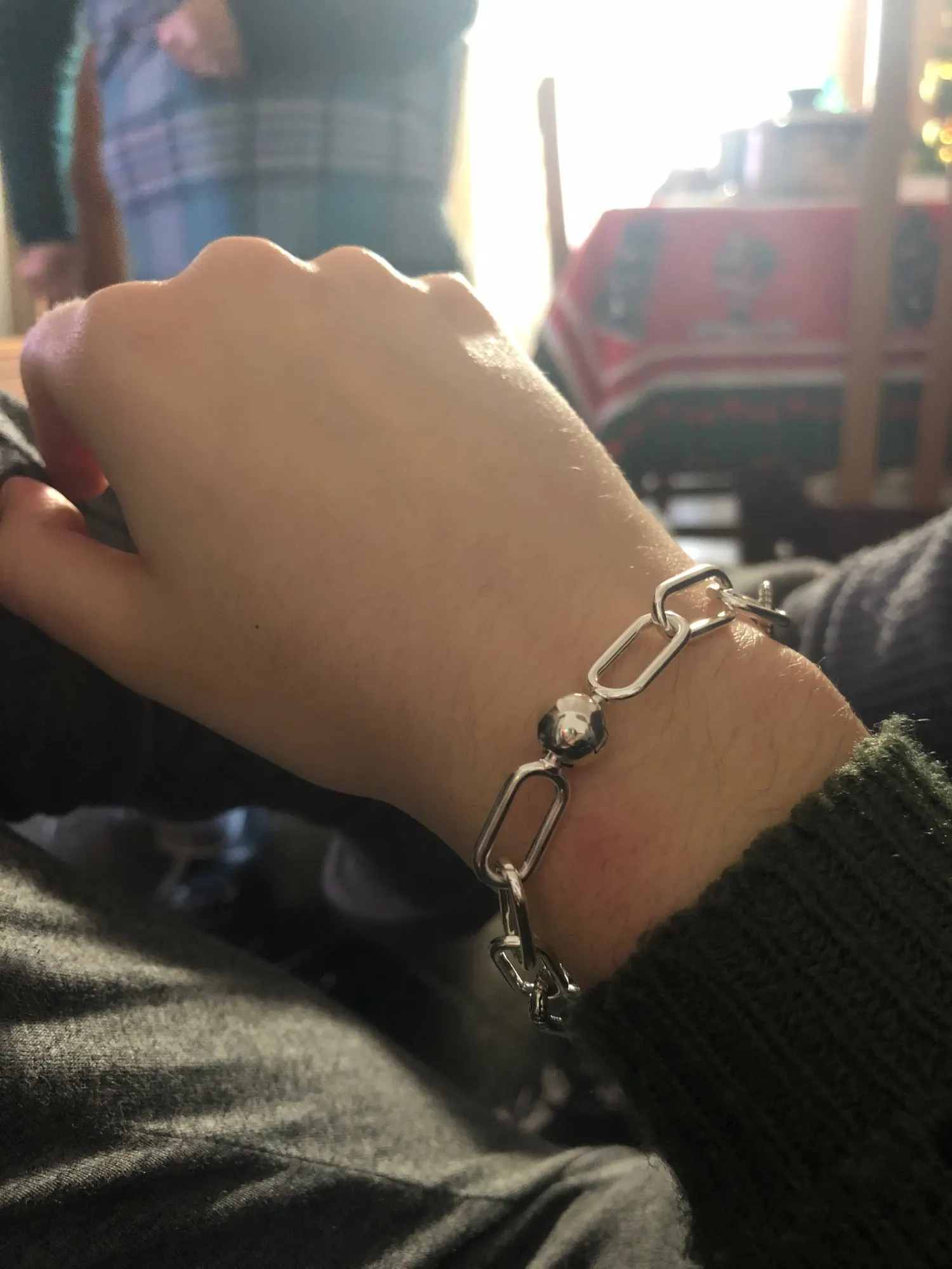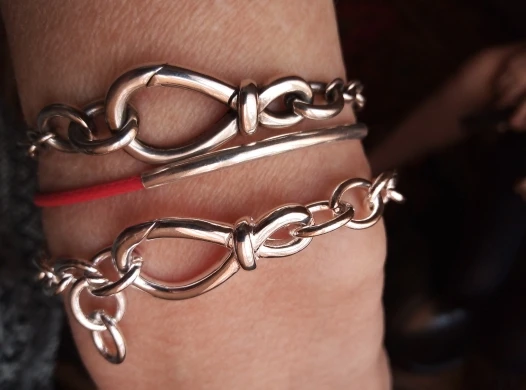 Очень оригинальный браслет, как на фото. Это очень удобный браслет для ношения, не раздражает одежду с длинными рукавами.