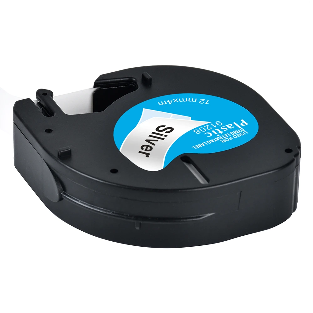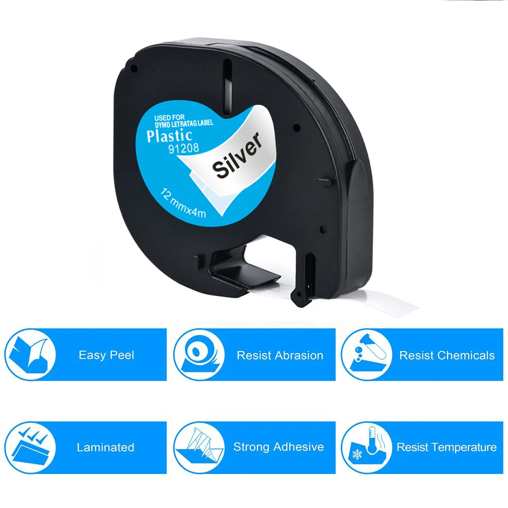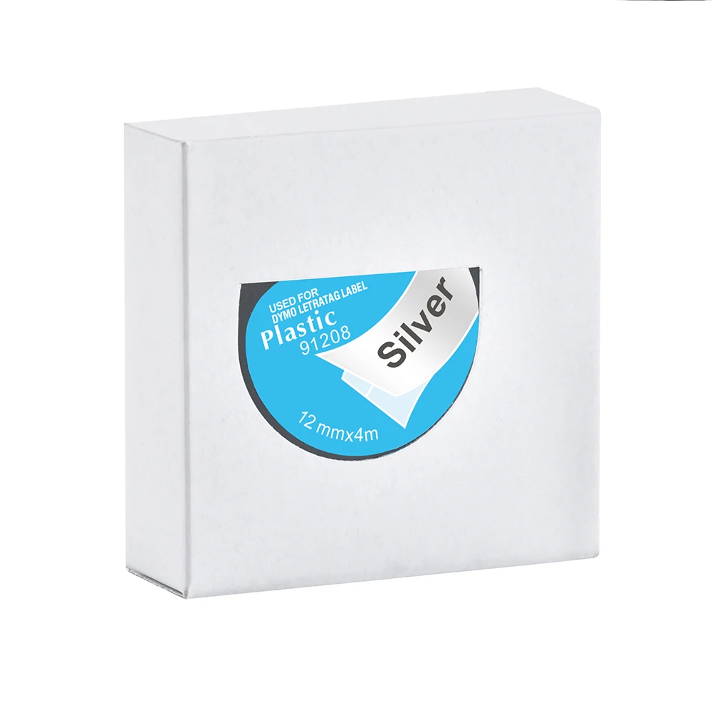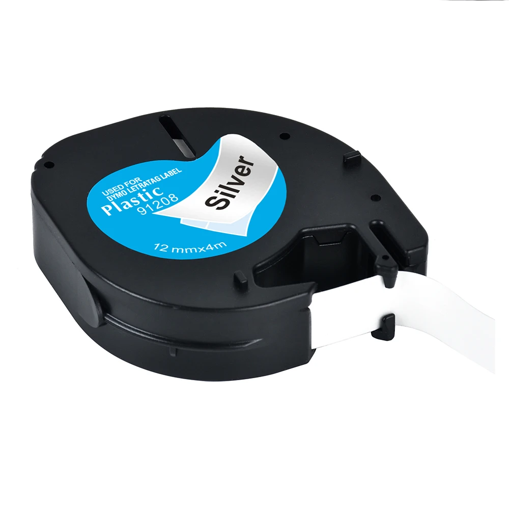 Yance 5 шт.лот 12 мм, черная на серебряном, совместимая с Dymo LetraTag лента 91208, пластиковая этикетка, лента для детской, этикеток
