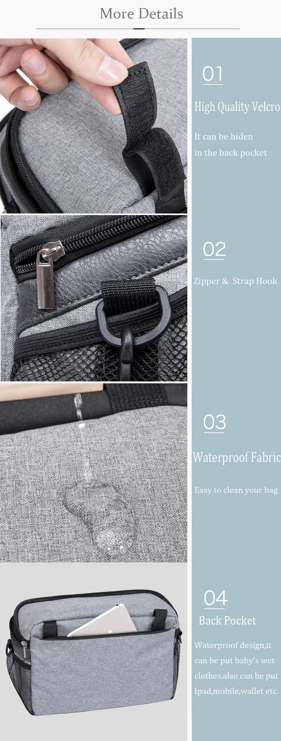 Характеристика: Размер: 33X14X23CM/12.3x5.5x9.1in Материал: полиэстер Без бисфенола, без фталата; Цвет: черный, серый Посылка включает в себя: 1xBaby сумка для коляски с ремешком Примечание: ремешок можно снять Применение: сумка для детской коляски, сумка для мамы, сумка на плечо, дорожная сумка для мамы Характеристика: 1. Портативный 2. Универсальный (подходит для всех колясок) 3. Многофункциональный 4. Водонепроницаемый 5. Большая емкость 6. Высокое качество