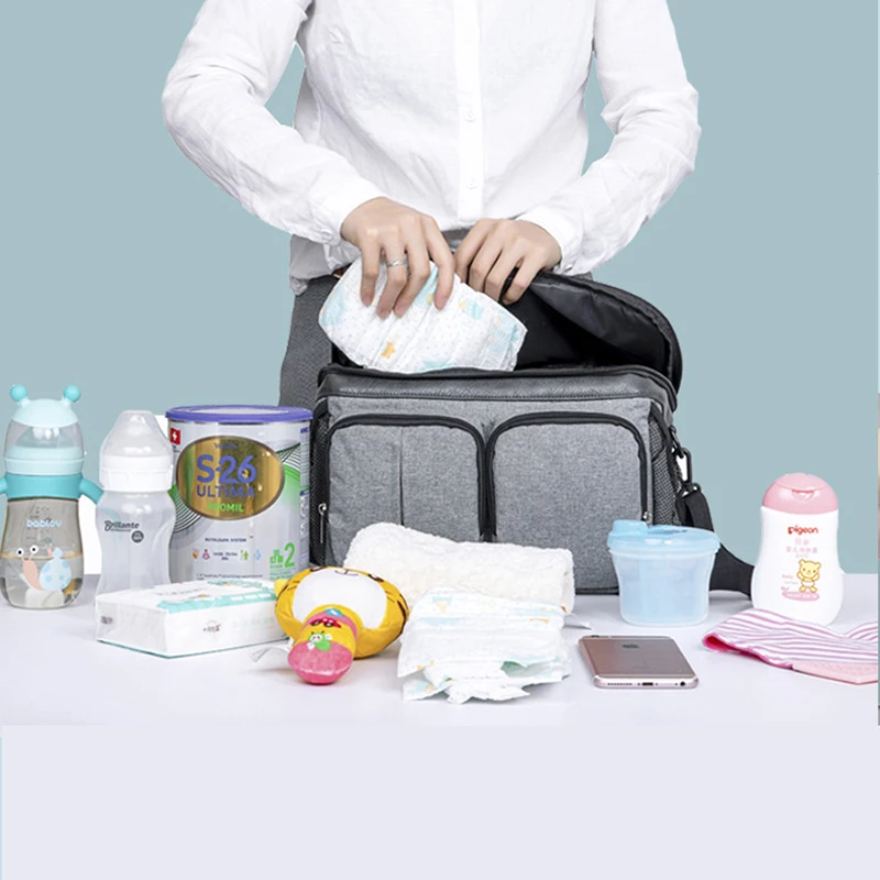 Серая сумка-Органайзер для детских колясок, большая сумка для подгузников для детских вещей, сумка для детских колясок, держатель для бутылочек, дорожные сумки