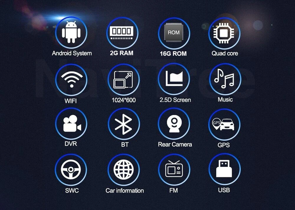 Напряжение: 12 В постоянного токаПроцессор: A7 1.3GHZx4Операционная система: Android 9,1Оперативная память: 1 ГБ/2 ГБПЗУ: 16 Гб/32 ГБРазмер экрана: 7-дюймовый емкостный экран 2.5DВерсия Bluetooth: 4,0Внутренний: WifiGPS: поддержкаРадиодиапазон: FMРазрешение: 1080PФормат аудио: MP3 MP2 AAC OGG FLAC APE WMA WAV RM AC3Формат видео: AVI 3GP/MP4 MOV MPG MKV WMV RMVBЯзык: китайский, английский, тайваньский, арабский, бразильский, русский, иврит, испанский, итальянский, французский, тайский, немецкий, японский, корейский, турецкий, чешский, иранский, венгерский, голландский, польский, шведский, украинский, вьетнамский, румынский, греческий, датский, финский и т. д. более 50 языков овОсобенности1. Подключение по Wi-Fi: встроенный модуль Wi-Fi, можно подключить к Интернету через точку доступа Wi-Fi, загрузить приложение для просмотра онлайн-ТВ, фильмов, общаться с вашими друзьями2.GPS-навигация: Встроенный навигационный модуль, Бесплатная навигационная карта (включая большинство стран слова), Поддержка многоязычного интерфейса/голосовой навигации3. Функция Bluetooth: Встроенный модуль bluetooth, поддержка bluetooth-подключения к телефону, громкая связь для звонков или воспроизведения музыки по bluetooth4. Функция зеркальной связи: Android MP5 плеер может зеркальная связь с телефоном Android с помощью USB кабеля (IOS телефонная связь через WIFI), вы можете коснуться экрана MP5 для работы телефона AndroidТелефон IOS не может работать с сенсорным экраном MP5 (подходит не для всех телефонов)5. Функция ввода видеорегистратора: Поддержка входа внешнего видеорегистратора (DVR) USB (только для видеорегистратора с приложением), вы можете управлять видеорегистратором с помощью приложения6. Функция заднего вида: Поддержка входа камеры заднего вида, более безопасная и удобная подложка автомобиля7. Настройка радио: Поддержка FM-тюнинга, вы можете слушать радио, которое вас интересует, Наслаждайтесь временем вождения8. Задний вход USB-порта: Поддержка заднего кабеля USB вход, может воспроизводить музыку/фильм (U-диск не входит в комплект)Разрешение 9,1020*600: обеспечивает высокое качество изображения10. Улучшите качество звука с помощью эквалайзера, используйте эквалайзер для настройки звука для получения лучших результатов11. Поддержка изменения логотипа автомобиля12. Поддержка управления рулевым колесом13. Сервис Google -- Play Store , Gmail, карты Google и т. д. Поддержка множества карт приложений, которые вы можете скачать в Google shop (cafolks, Яндекс, IGO и т. д.)14. Поддержка онлайн и оффлайн карт, I-GO ; Sygic ; Navitel maps, карты других стран I-GO или Sygic.15. Поддержка цифрового ТВ CMMB (опционально)16. Поддержка USB DVR (опционально)17. Поддержка TMPS (опционально)18. Поддержка OBD (опционально)19. Поддержка DAB (необязательно)Посылка входит:1 X Автомобильный сенсорный монитор Bluetooth1 Антенна GPS1 X вход для камеры1 вход/выход RCA1 X оригинальный автомобильный адаптер2 X USB-кабеля1 руководство по эксплуатации