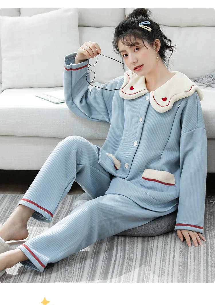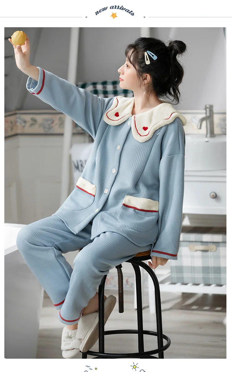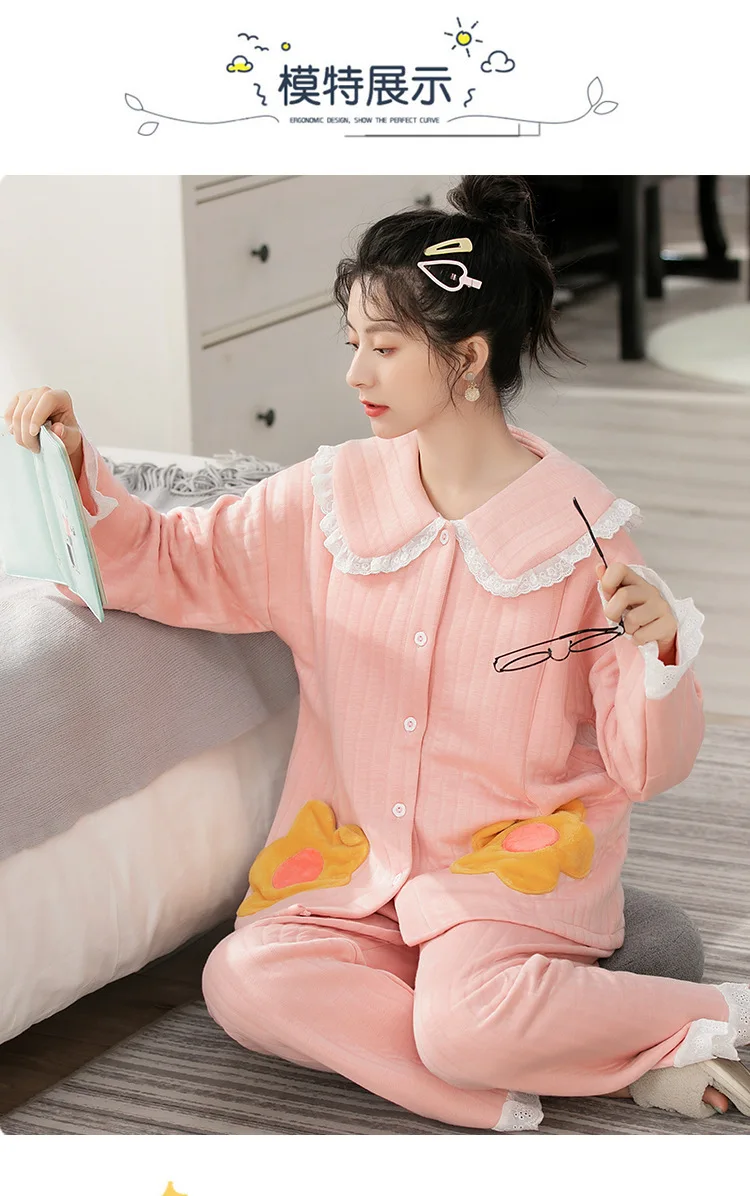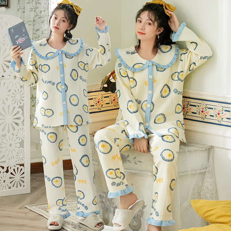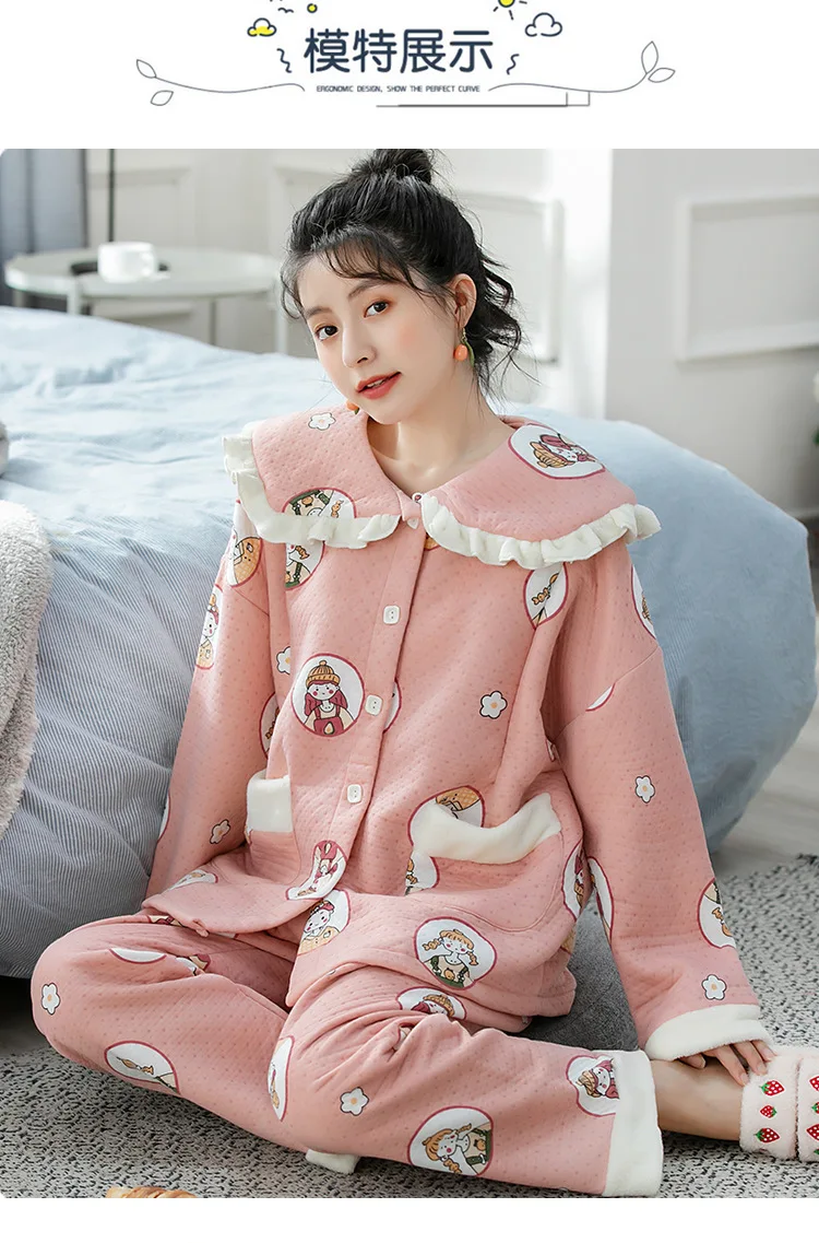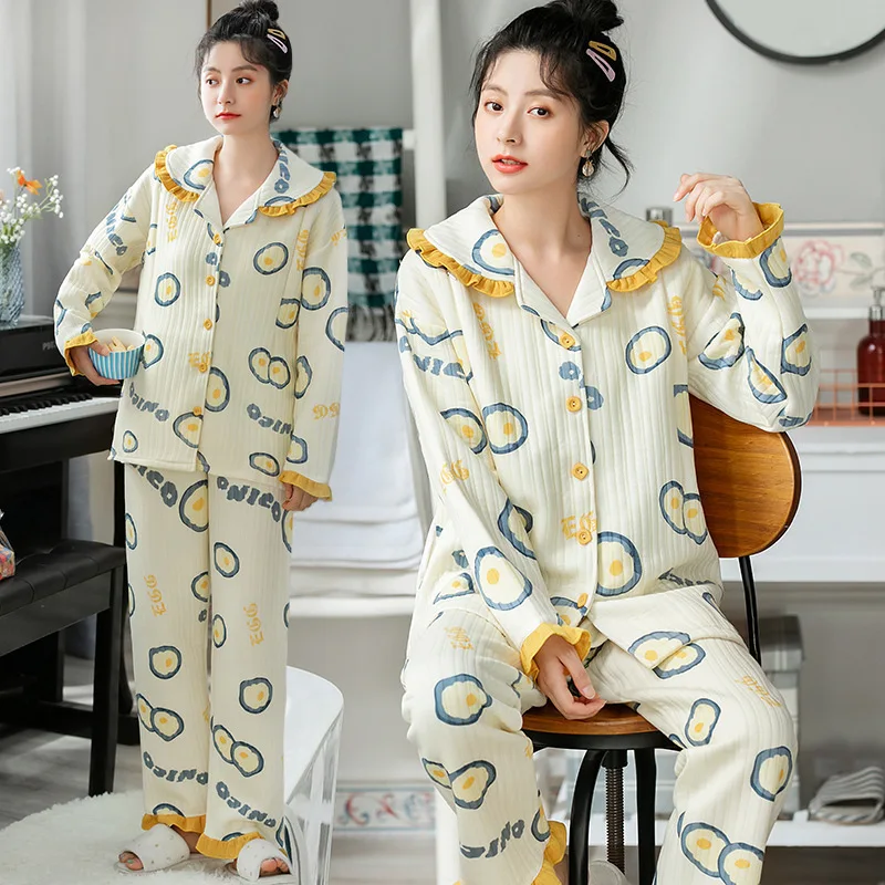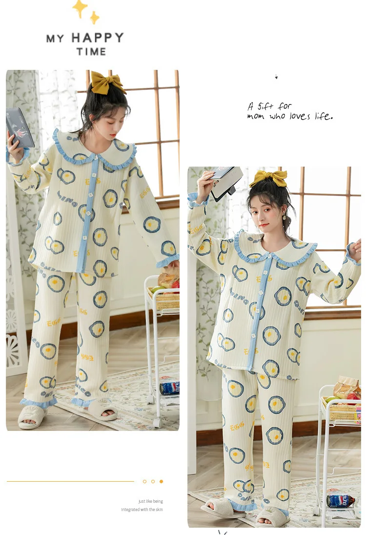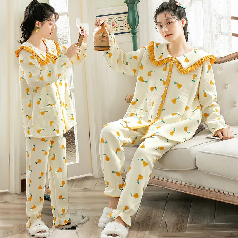 Пижама женская осенне-зимняя с длинным рукавом и принтом клубники
