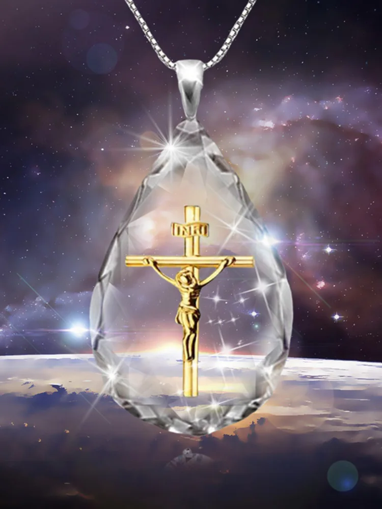Хрустальная капля кулон ожерелье Иисус крест ожерелье чокер Шарм христианская пара ювелирные изделия подарок