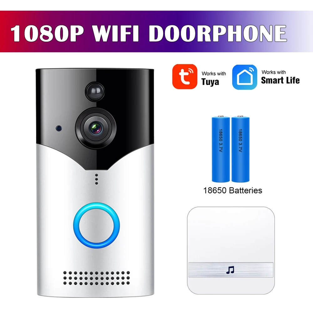 Умный видеодомофон Tuya 1080P, беспроводной дверной звонок, дуплексное аудио, удаленная запись, домашняя камера ночного видения
