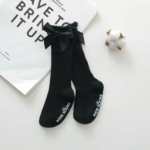 Детские носки для малышей милые тянущиеся теплые носки до колена с бантиками для девочек красивые длинные носки с бантиком, 100% хлопковые носки детские
