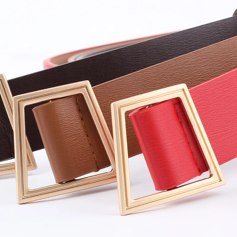 Натуральный женский ремень из искусственной кожи без булавки с геометрической металлической пряжкой пояс для платья женский ремень повседневные декоративные ремни высокое качество