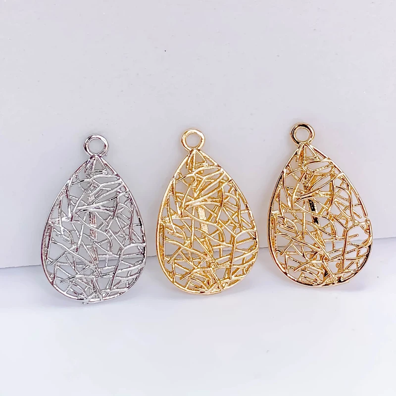Настоящее золото, серебро, покрытый цветом, полые металлические серьги, подвески, ювелирные аксессуары, Diy материал для сережек, ожерелий, 6 шт.