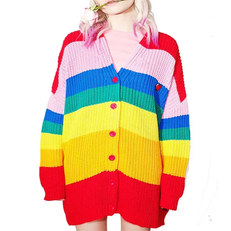 Кардиган женский в полоску, Радужный, свободный, осень 2020