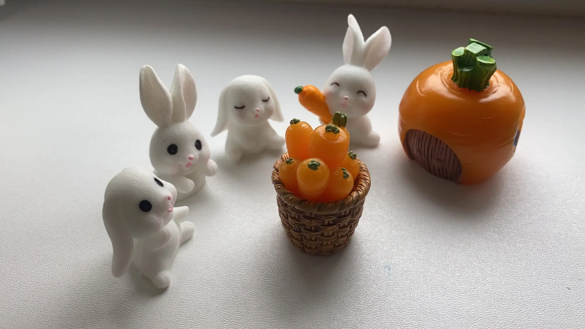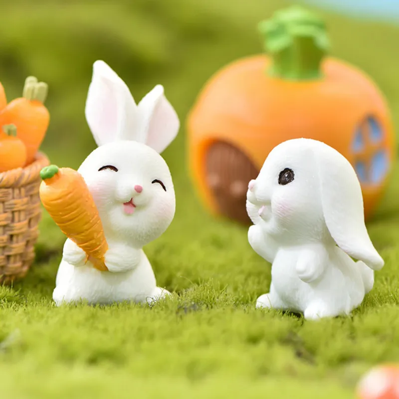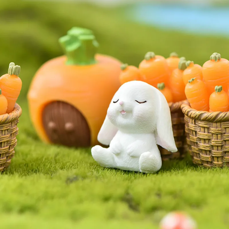 Миниатюры для сказочного сада, кролики, миниатюры, пейзаж, Декор, милые Мультяшные животные, кролик с морковкой, дом для кролика, садовые растения, смола, 7 шт.