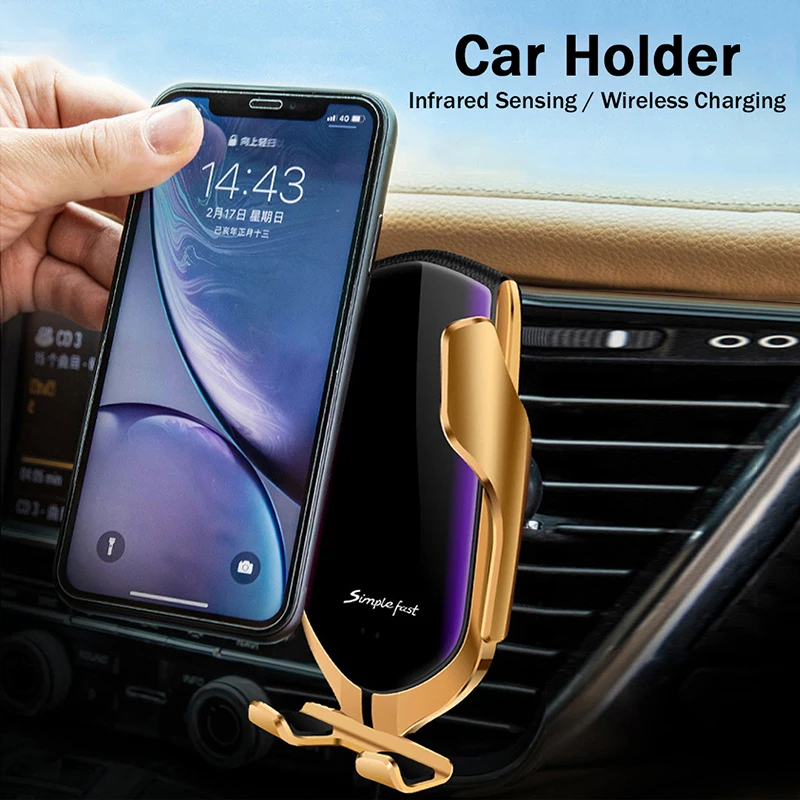 Автоматическое автомобильное беспроводное зарядное устройство R1 10 Вт для iPhone SE 2020 11 Pro, инфракрасное Индукционное Беспроводное зарядное устройство Qi, автомобильный держатель для телефона