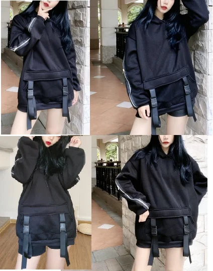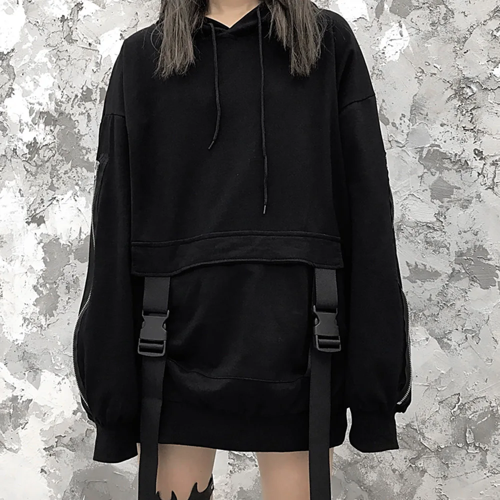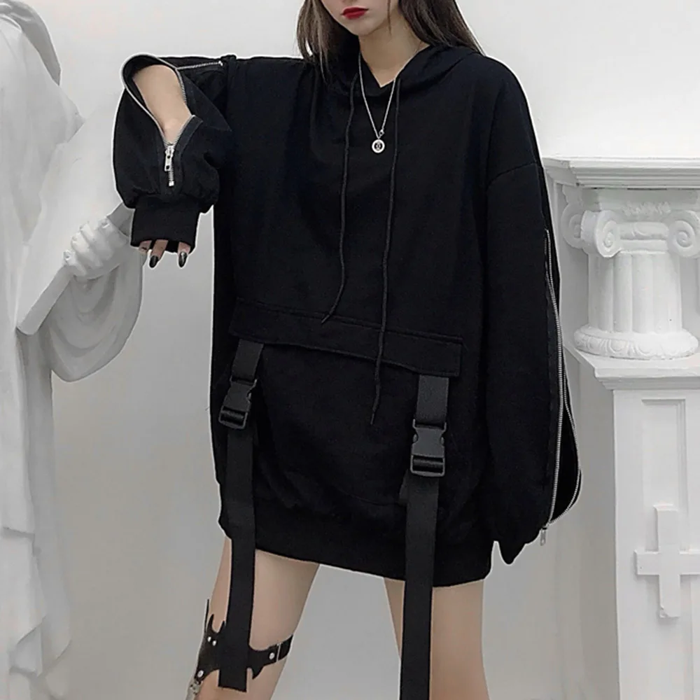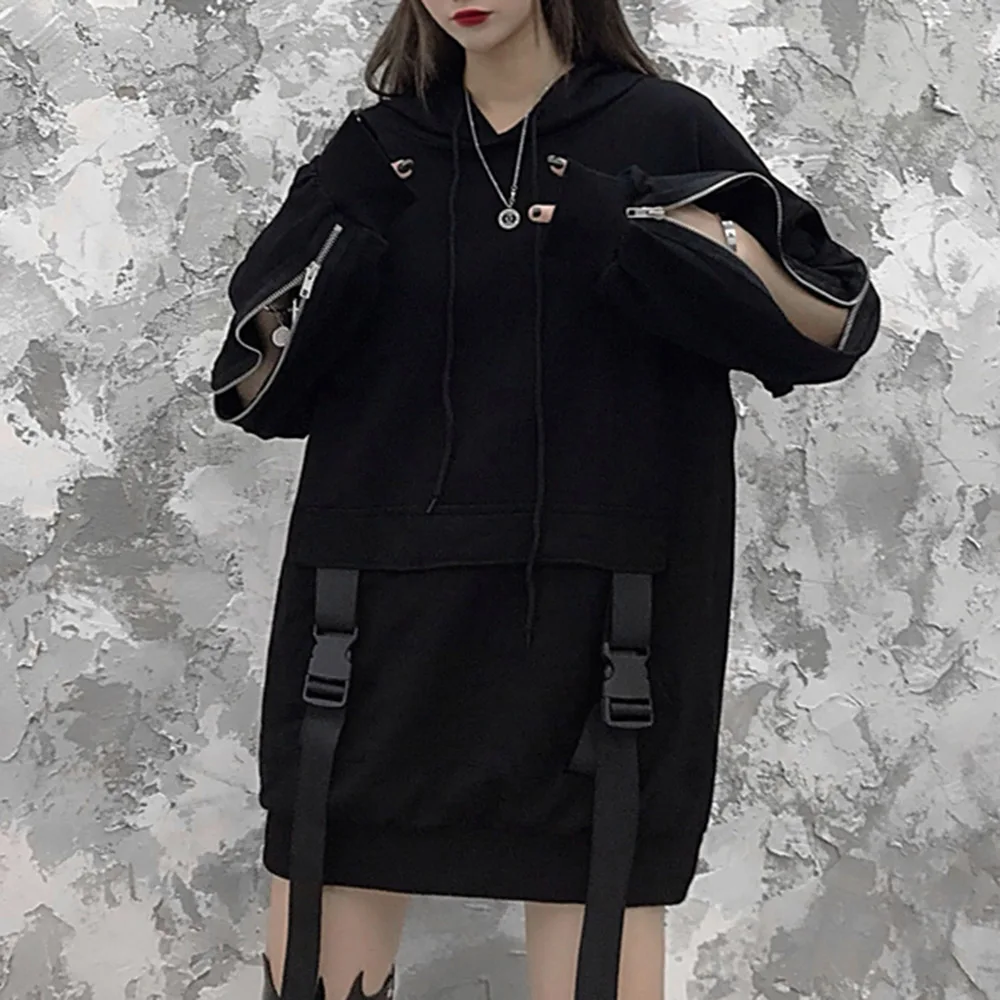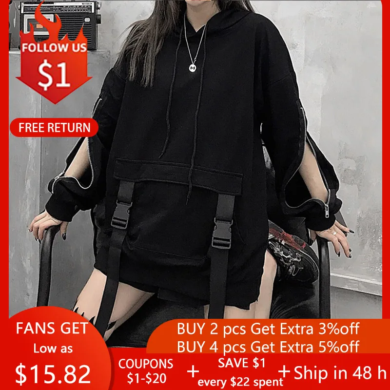 Rosetic, на молнии, дизайнерская, Готическая Женская толстовка, 2020, с капюшоном, плюс размер, свободный свитер, пуловер, уличная одежда, черные толстовки с капюшоном, на шнурке