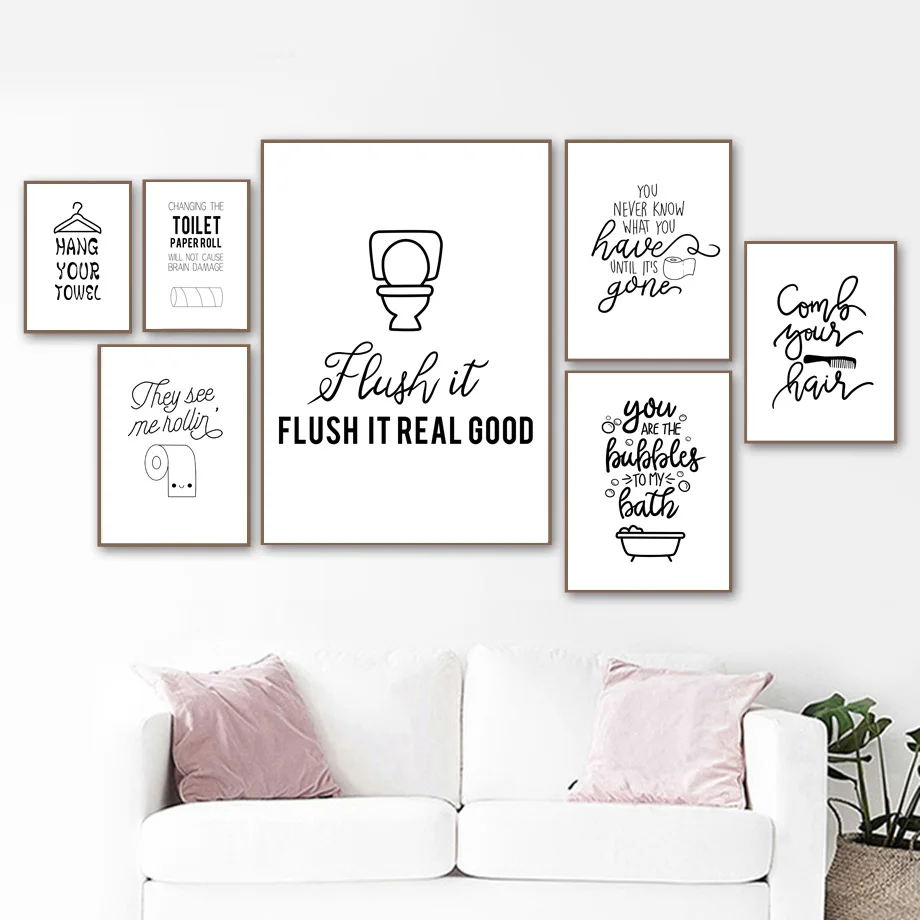 Настенная картина с забавными цитатами на туалетной бумаге с зубцами для ванной, настенные картины на холсте, скандинавские постеры и принты, настенные картины для декора ванной комнаты
