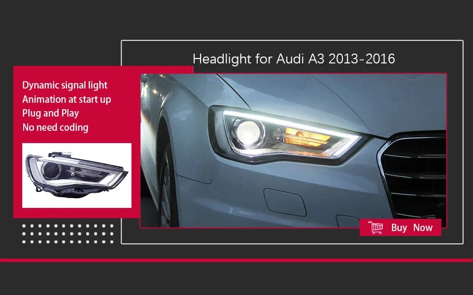 AKD автостайлинг фара для Audi A3 фары 2014-2016 A3 8V светодиодный ная фара проекционный объектив DRL фара автомобильные аксессуары