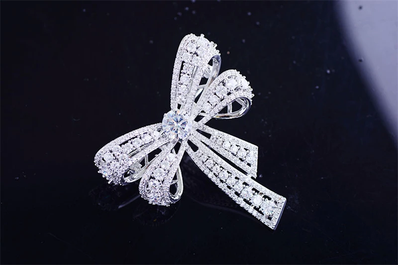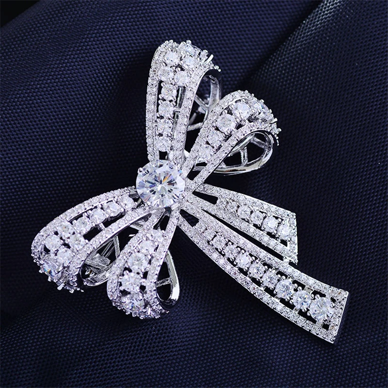 Женская брошь в форме банта, простая большая брошь серебряного цвета с цирконием класса ААА, ювелирное украшение для пальто, костюма