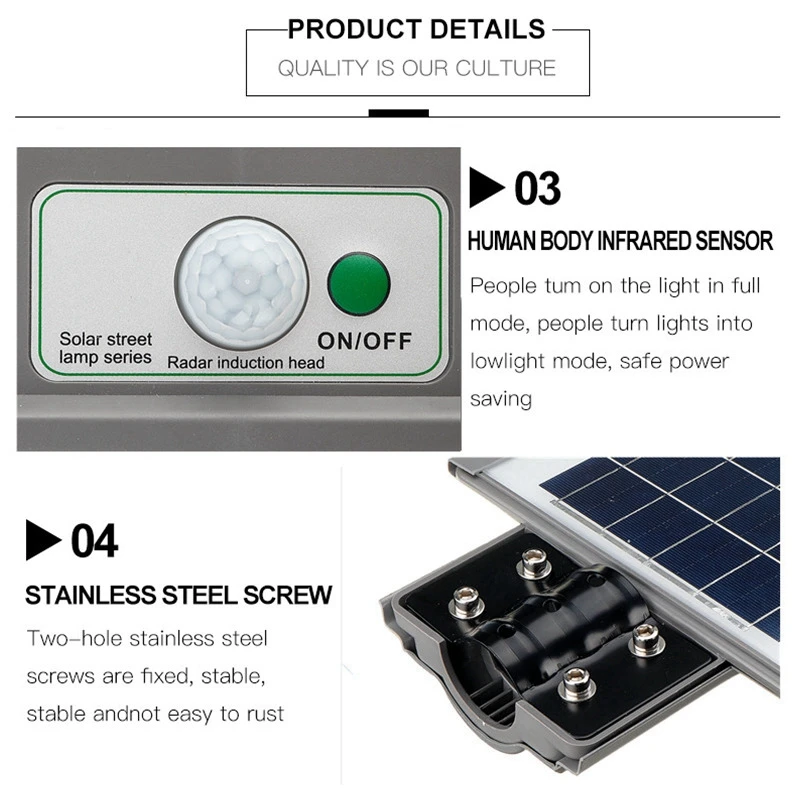 【Супер зондирования MODE】Автоматически начинается в сумерках, автоматически выключается на рассвете и автоматически заряжается. Яркость увеличивается по мере приближения людей, и яркость автоматически уменьшается, когда люди уходят. Он может непрерывно освещаться более 48 часов после полной зарядки в течение дня. Дальность обнаружения составляет 6-8 метров, а Площадь облучения может достигать 70-80 квадратных метров.