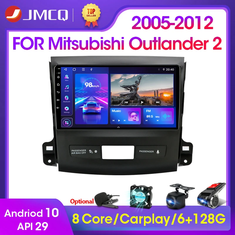 Мультимедийная магнитола JMCQ, автомобильный видеоплеер с 9 "экраном, на Android 10, 2 Гб ОЗУ, 32 Гб ПЗУ, с GPS Навигатором, DSP, для Mitsubishi Outlander xl 2, 2005-2012, типоразмер 2DIN