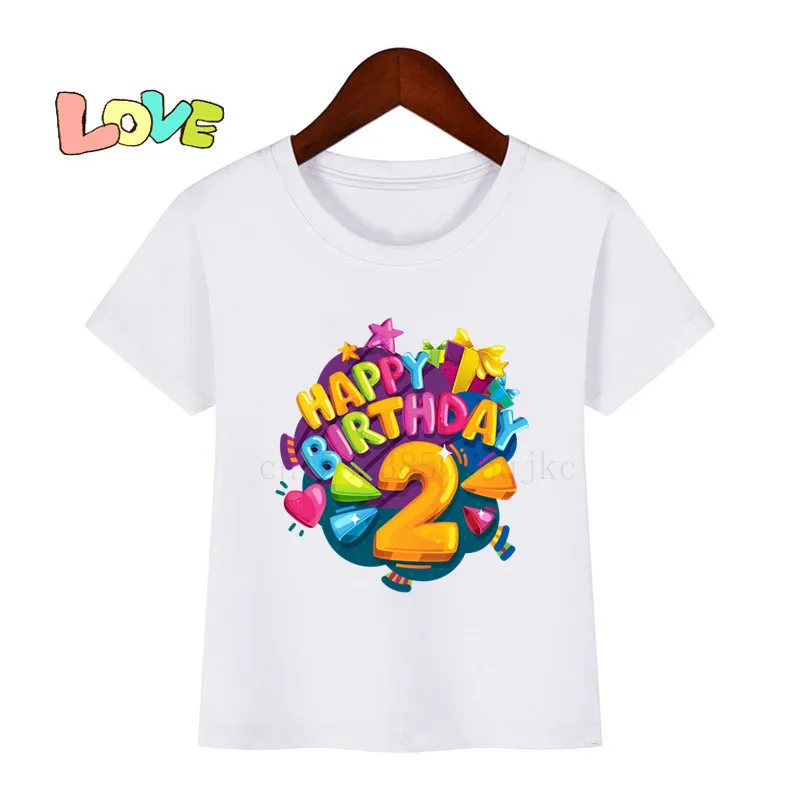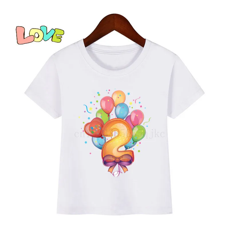 Детская футболка с рисунком для дня рождения с цифрой 2 детские милые футболки для детей 2 лет забавная Подарочная футболка для мальчиков и девочек