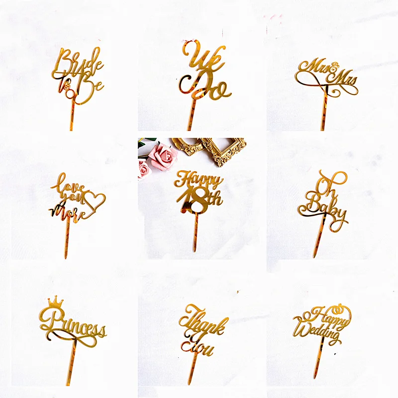 Ins Золотая тема акриловый торт Топпер для дня рождения украшение для торта для невесты Свадебный десерт торт флаг Свадебные товары для вечеринки