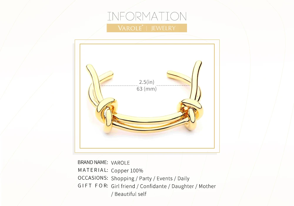 Элегантный Браслет-манжета VAROLE с узлом, золотистый браслет-брасл...