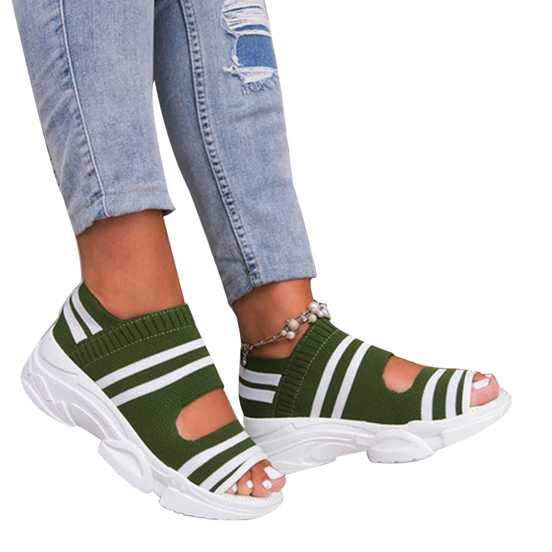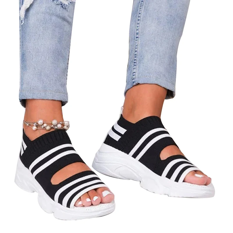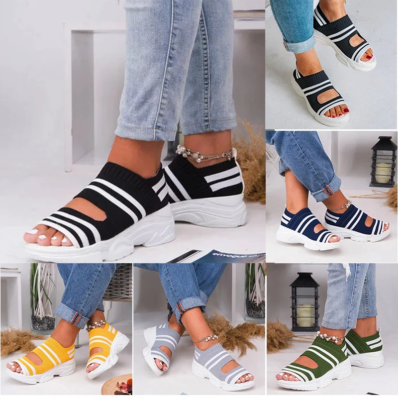 Женские сандалии на платформе, Нескользящие, вязаные, без застежки, для ходьбы, кроссовки-носки, d88
