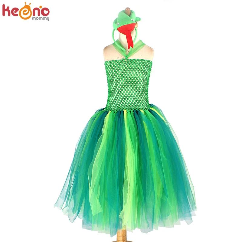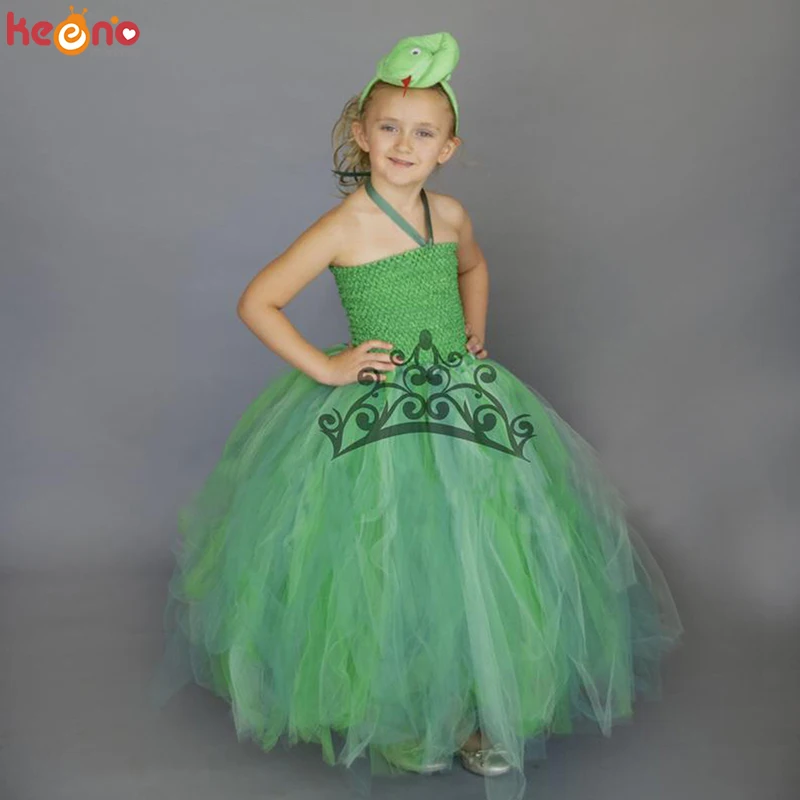 1. Зеленое платье со змеиным узором ручной работы, включая одно платье-пачка и один 3D обруч в виде змеи.