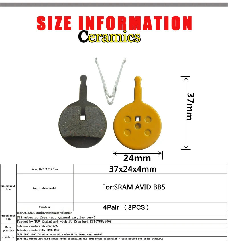 4 пары керамических велосипедных дисковых тормозов для SRAM AVID BB5