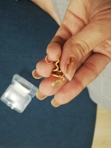 Товар очень хорошо упакован и защищен. Это очень красиво и хорошо выглядит на вид. Единственный улов заключается в том, что хвост змеи прилипает к моему уху и может зацепиться на волосках, он также создан, что это будет зависеть от уха.