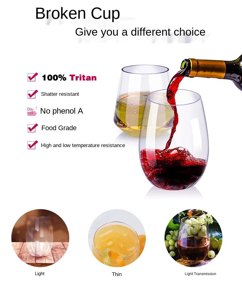 Данный винный бокал изготовлен из материала тритань, благодаря чему его прозрачность и лаконичность очень похожи на стекло. Трудно испачкать даже при длительном использовании. Но его легко мыть и чистить и выдерживает большое давление. Отличные винные чашки для дома, отеля, ресторана и других мест.