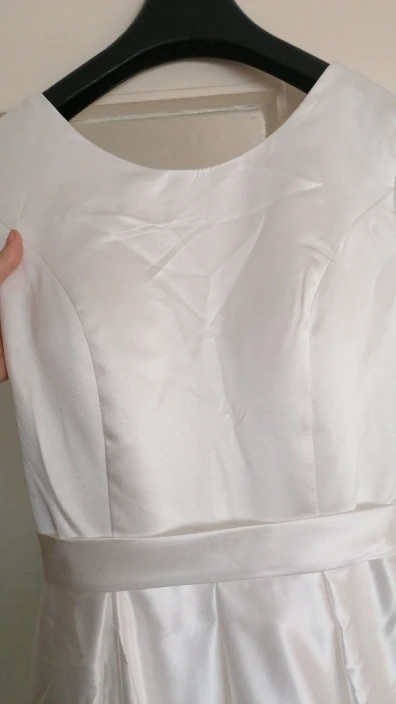 Сейчас платье подрезано. Я обязательно отправлю фотографию, так как она будет готова. Платье очень хорошее, сатин плотный, нитки не торчат. Я очень рад.
