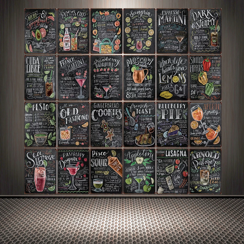 Mike86 коктейльное печенье, лазанья, лимоны, Мартини, металлическая живопись, подарок, художественный декор для бара, LTA-3124B, 20*30 см
