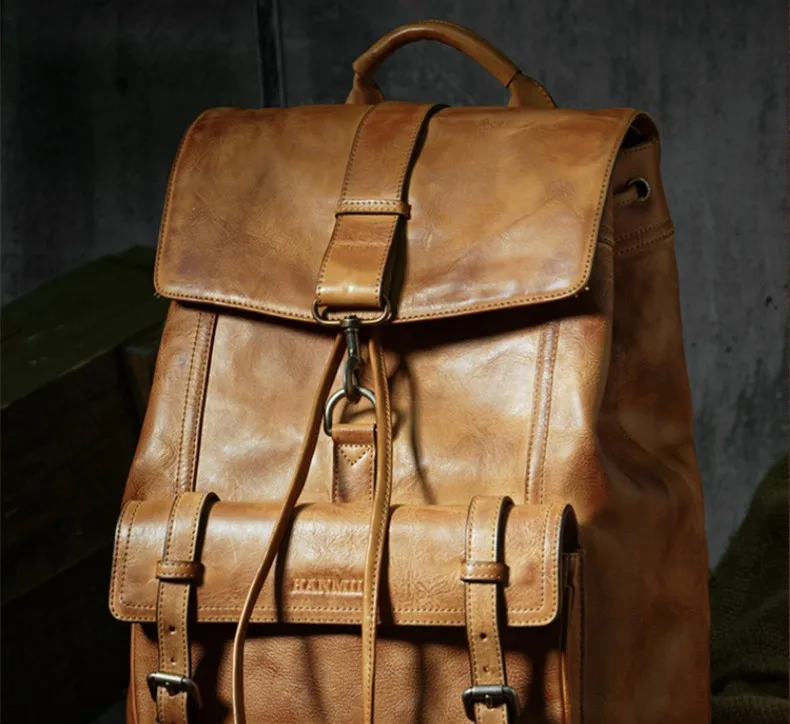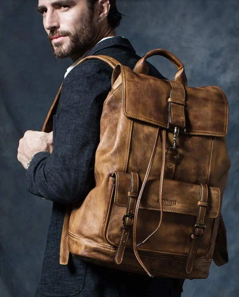 Рюкзак мужской, из натуральной кожи, для путешествий, для ноутбука