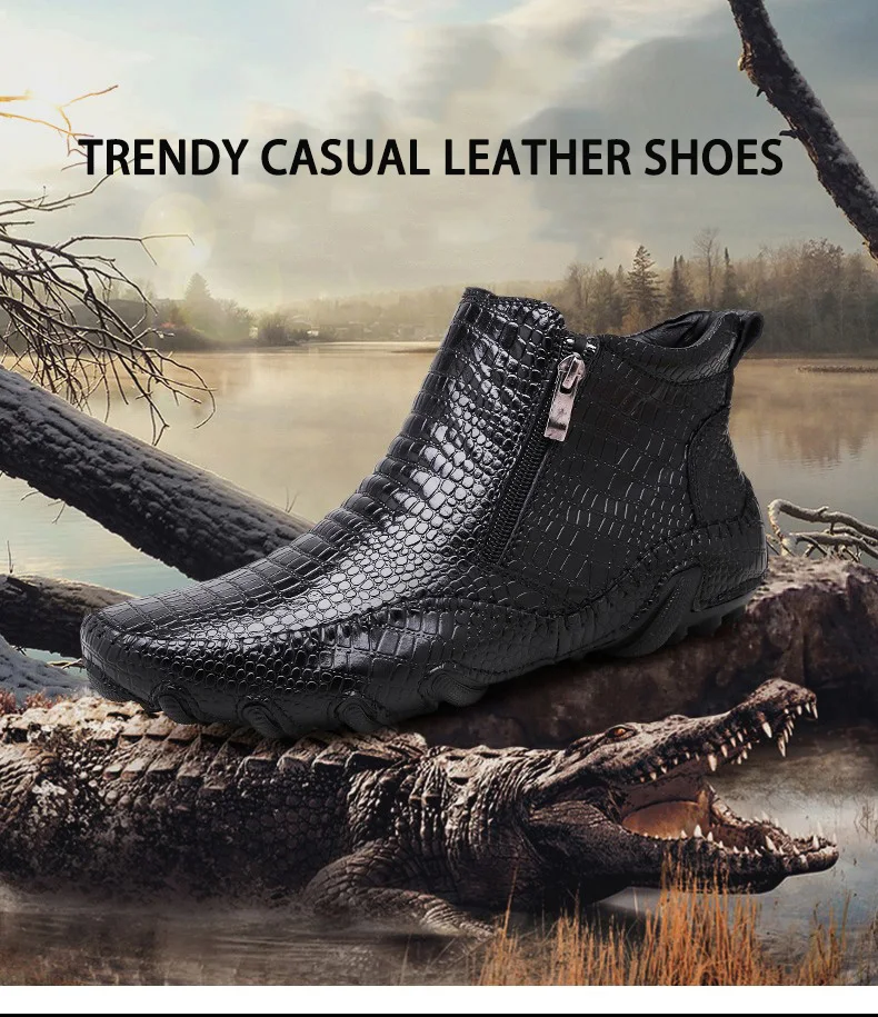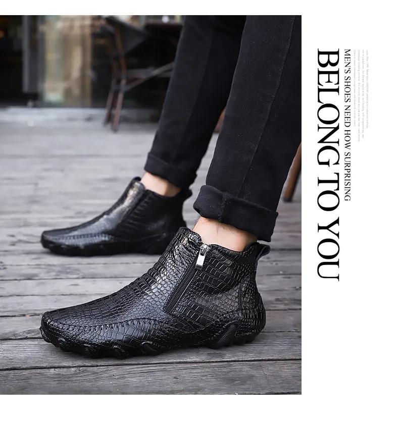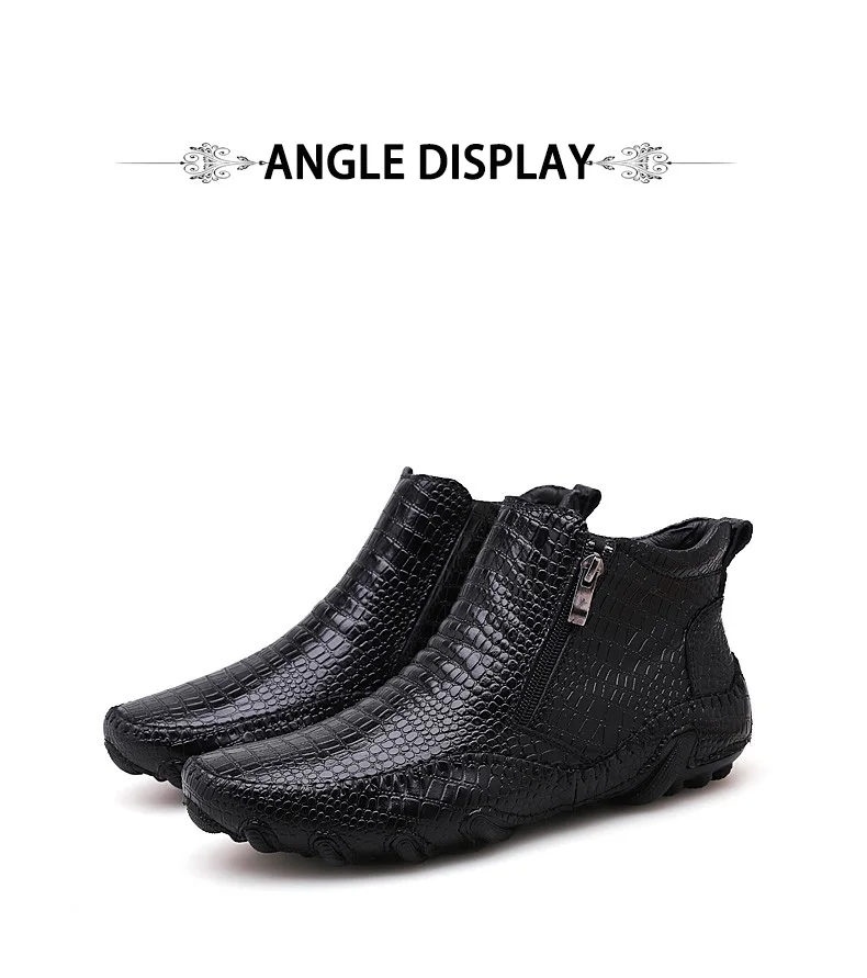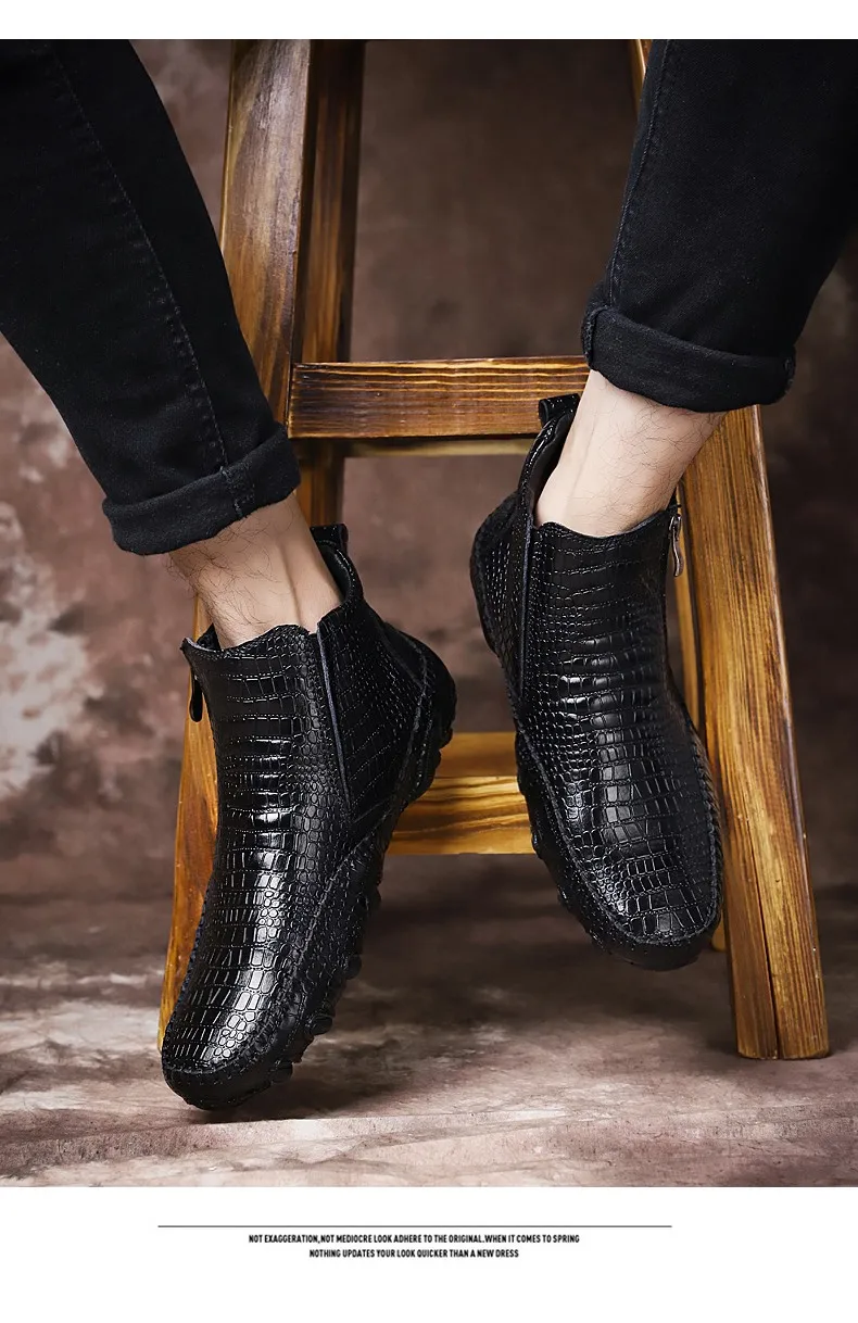Мужские крокодиловые кожаные ботинки, модные удобные мужские ботильоны с высоким берцем, мужская обувь, осень 2020