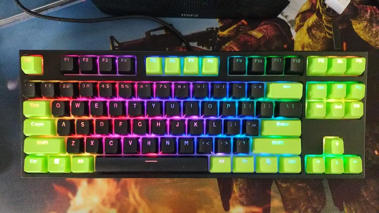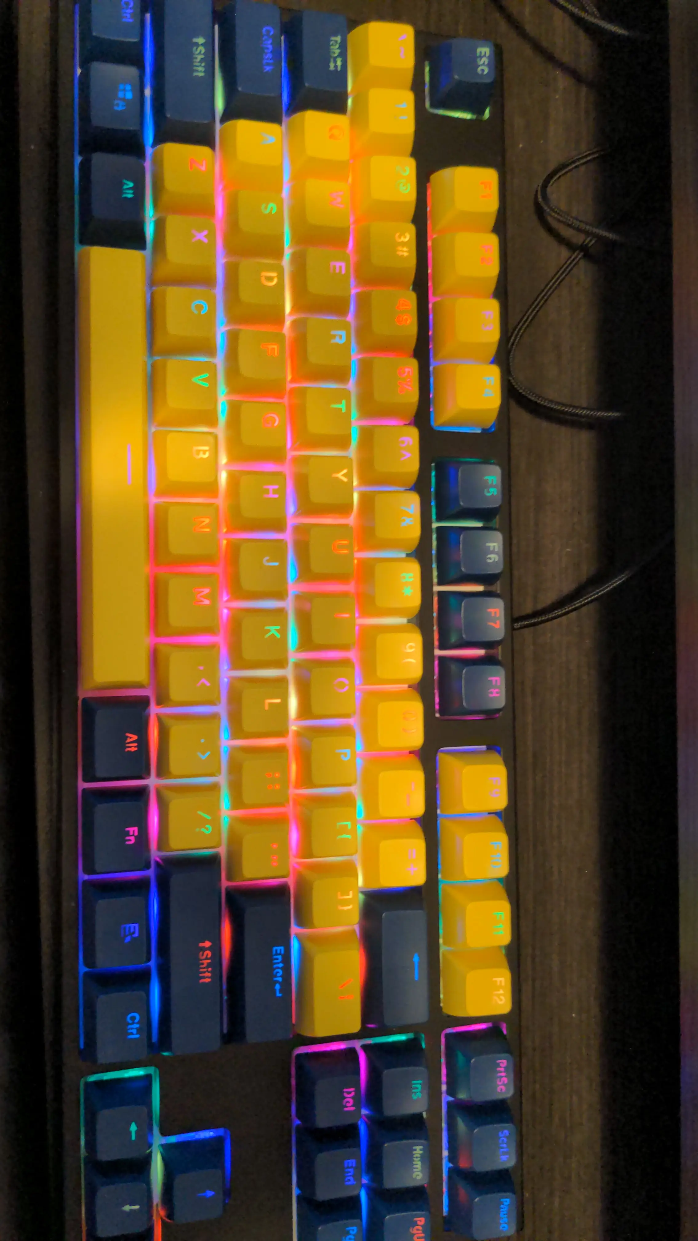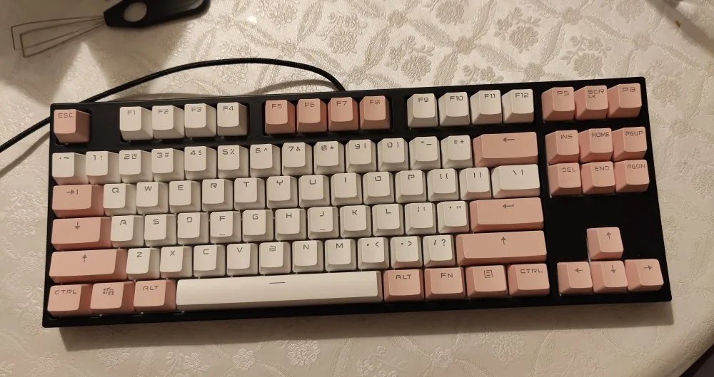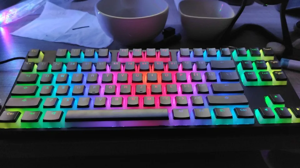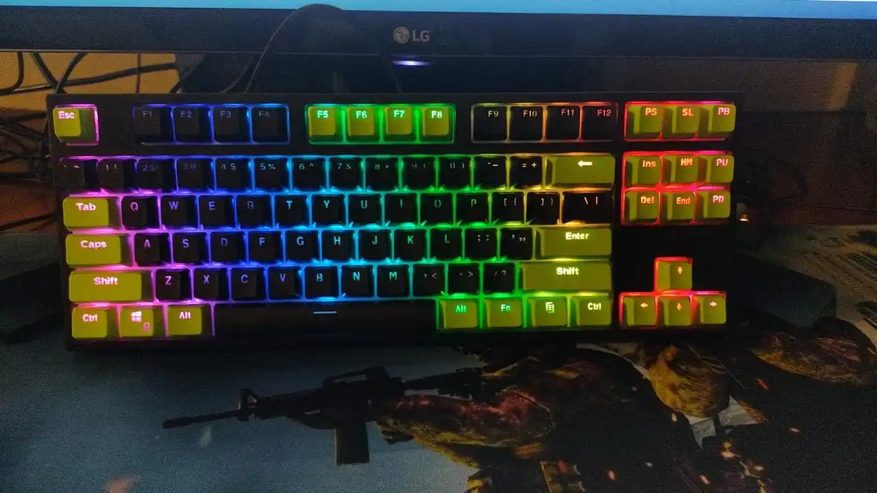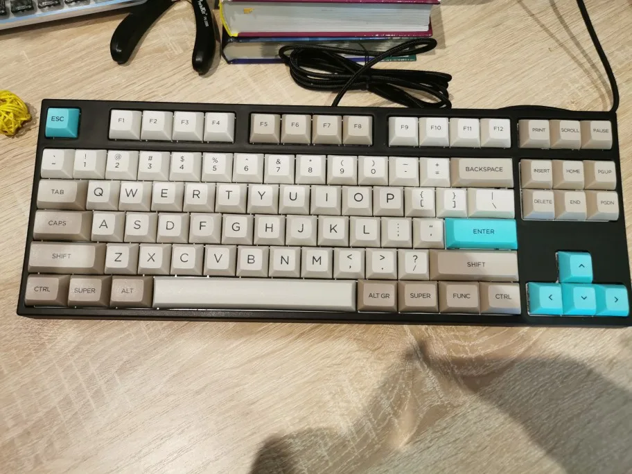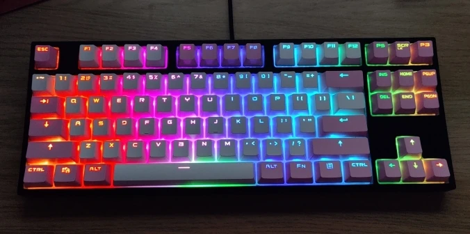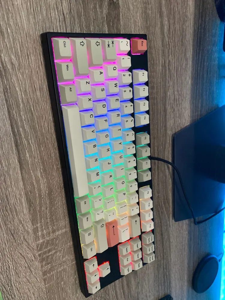 Отличная клавиатура. Я заказал клавиатуру TKL с желтыми переключателями Gateron. Я очень доволен, чувствую себя отлично с колпачками ПБТ, которые я использовал в этой конструкции. Этот комплект действительно хорошее соотношение цены и качества.