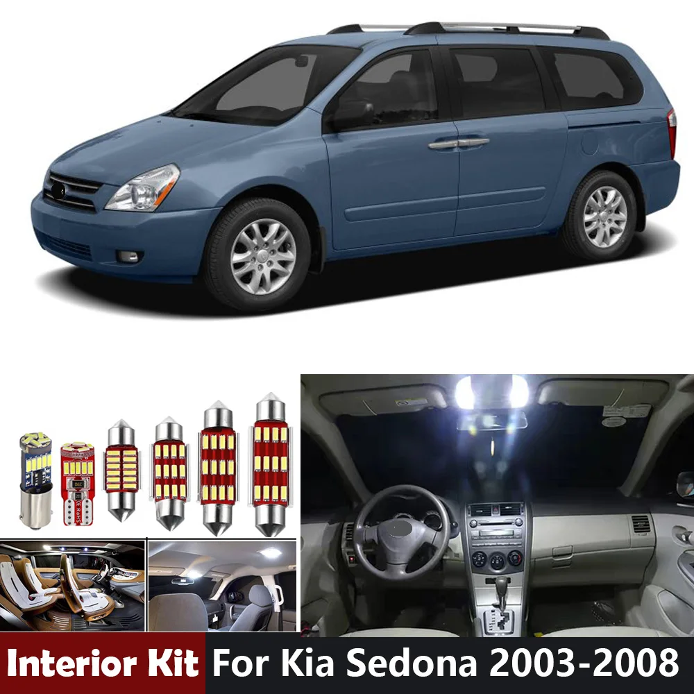 14 шт. Canbus, белые автомобисветодиодный ные лампы для Kia Sedona 2003-2008 светодиодный комплект светодиодсветильник ламп для салона, купольная лампа для номерного знака