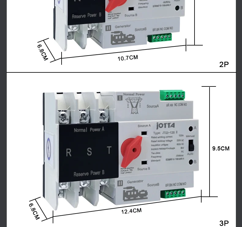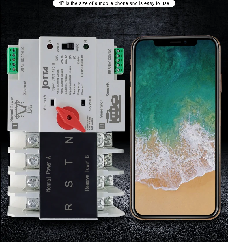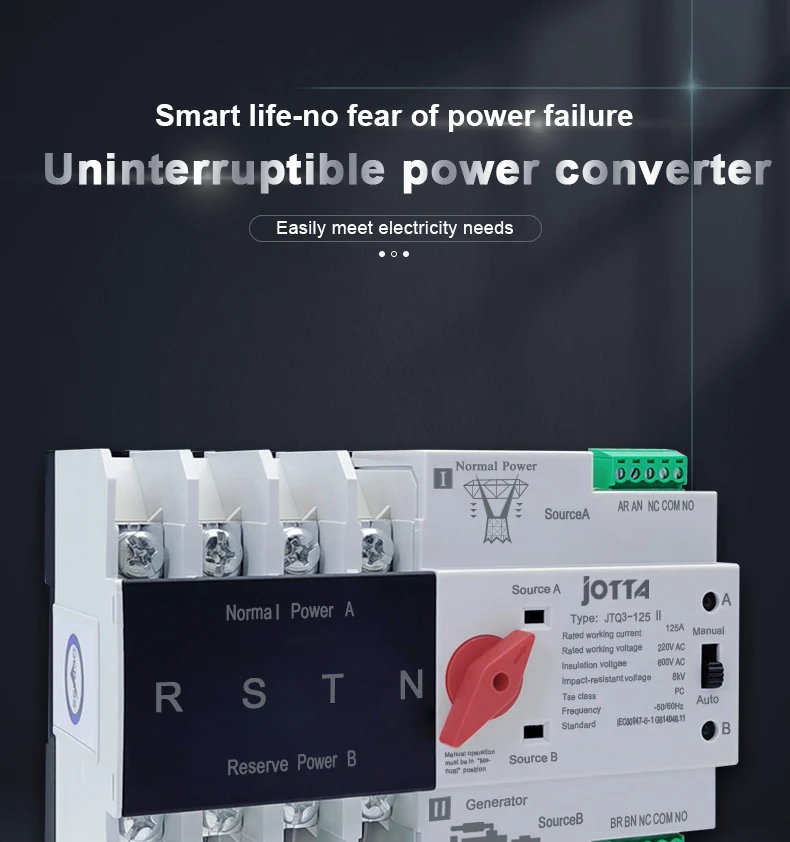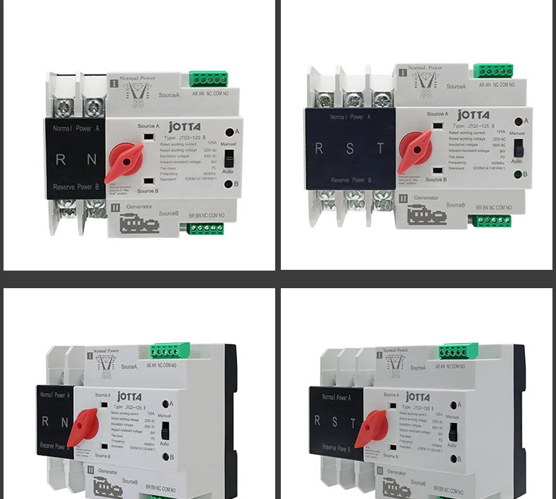 Автоматический переключатель Jotta W2R-2P3P4P 16a 32a 63a 80A 100A 125A 220 В ATS, Электрический селектор, двойной выключатель питания