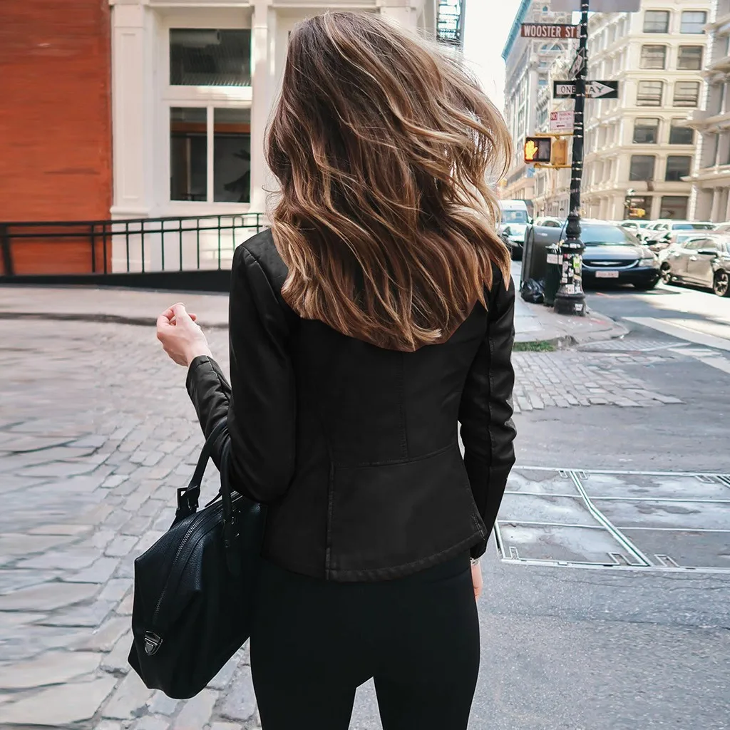 Женские повседневные кожаные куртки на молнии, мотоциклетные облега...