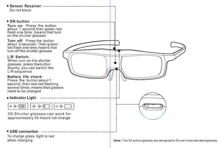Как только вы используете96-144 ГцDLP-Link 3D проектор/телевизор и подключение через 3D Источник изображения, Наши очки идеально подходят для вашего проектора.
