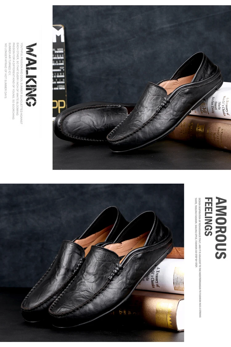 Мужские кожаные туфли, дышащие мокасины, кроссовки, удобная повседневная обувь для вождения, плоская подошва, размера плюс 46, 2020
