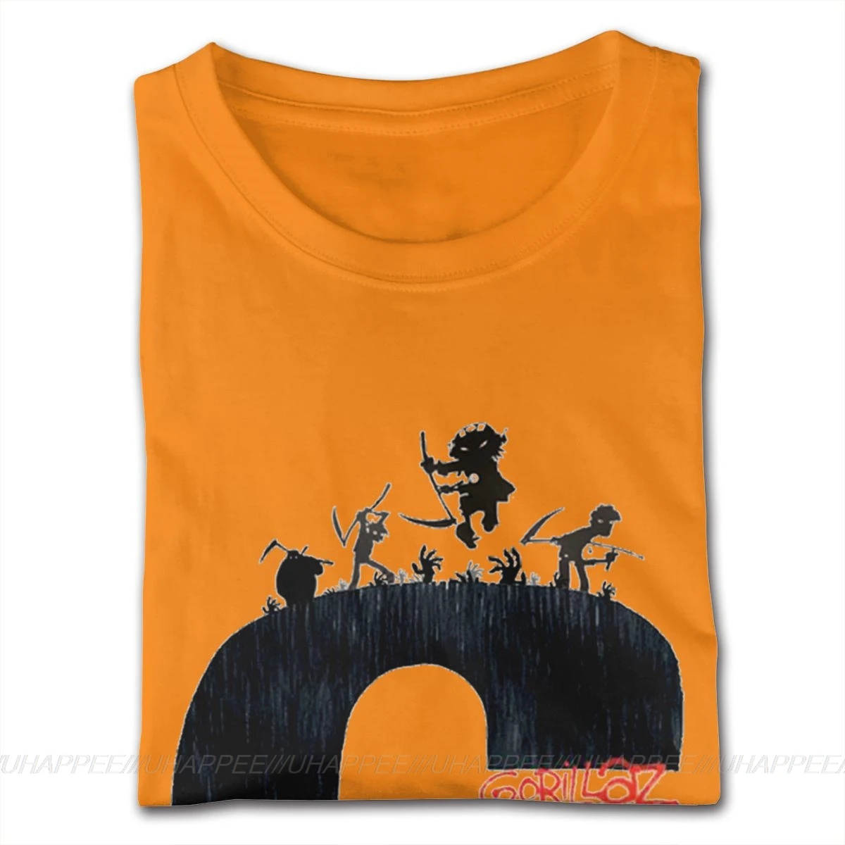 Футболки с принтом Gorillaz обоев мужские на заказ с коротким рукавом Ультра хлопковые оранжевые футболки с круглым вырезом рубашки