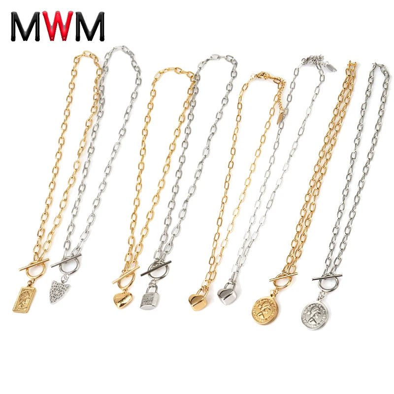 MWM женское ожерелье в форме сердца из нержавеющей стали многослойная подвеска в форме любовника винтажное свадебное ожерелье в стиле панк подвески для женщин подарок