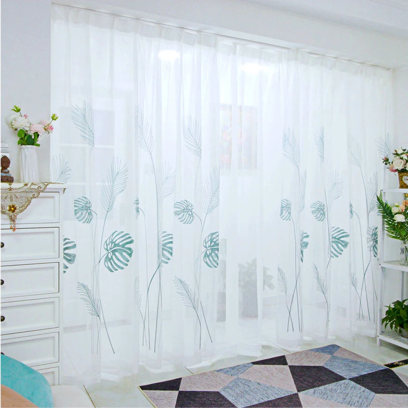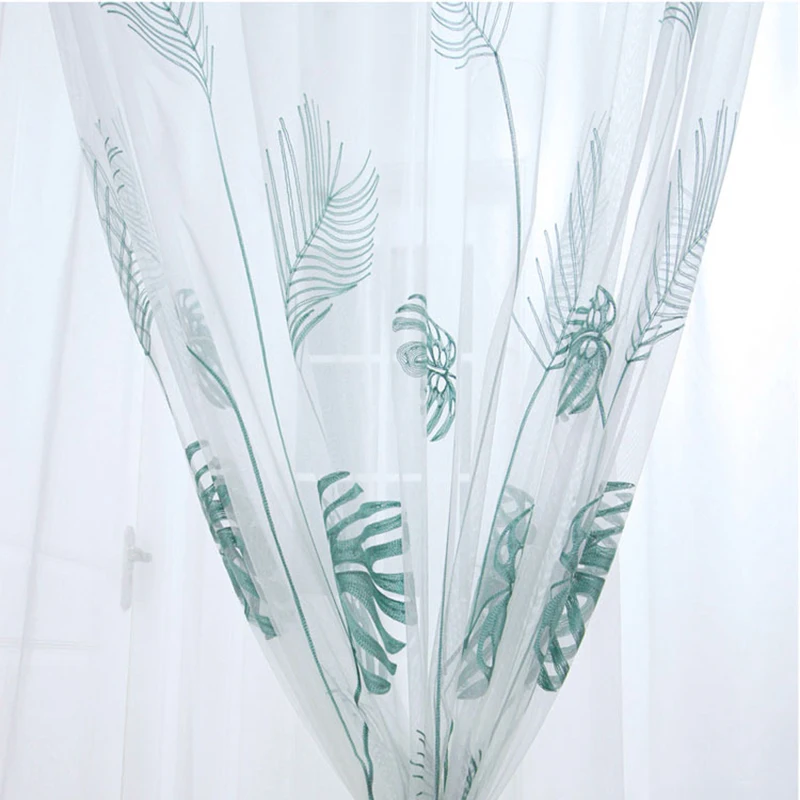 Тюлевые шторы с вышивкой в виде растений, современные, для гостиной, спальни, минималистская оконная сетка, прозрачная ткань