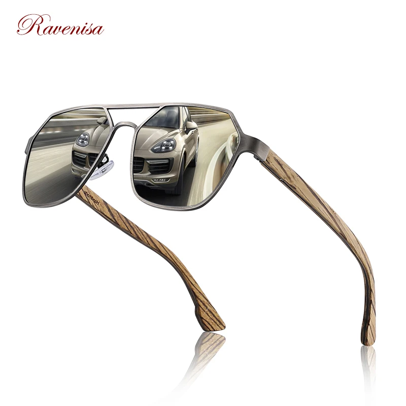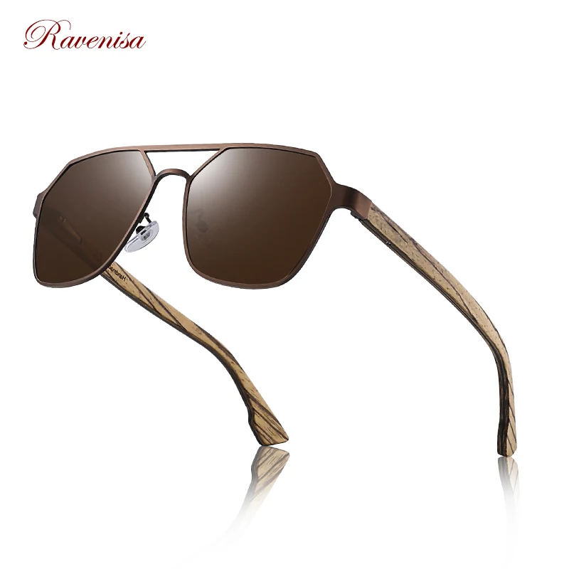 Солнцезащитные очки Ravenisa в металлической оправе с пружинными деревянными дужками и поляризованными линзами, солнцезащитные очки 4 цветов для мужчин и женщин, солнцезащитные очки