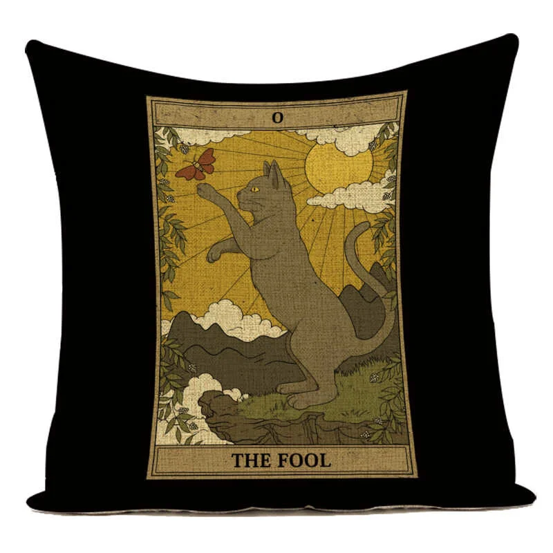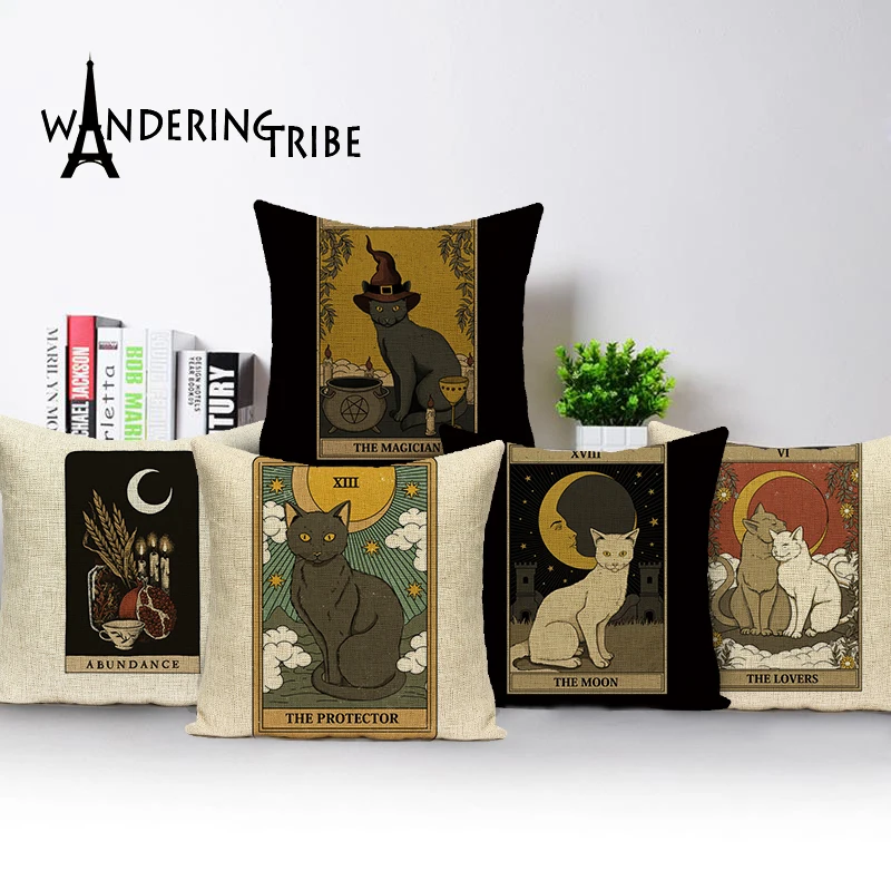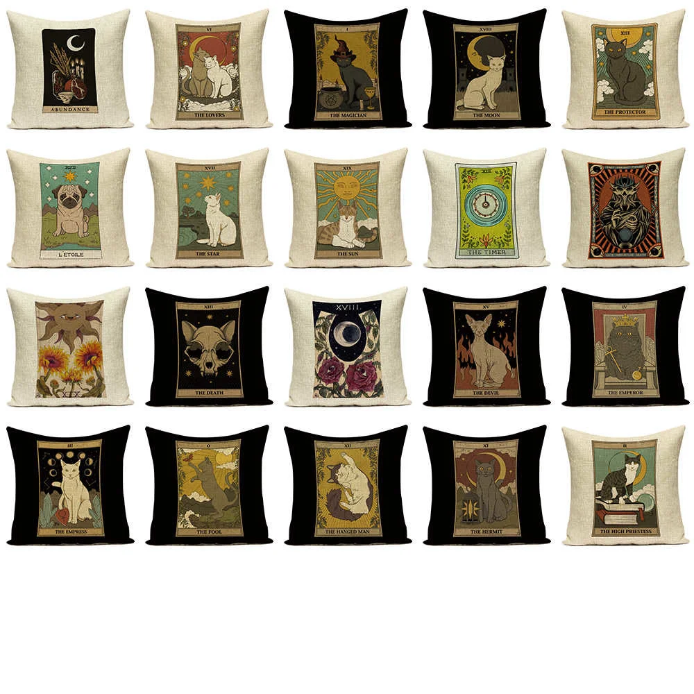 Наволочка для подушки с рисунком карты Таро, декоративный чехол для подушки с изображением собаки Шарпея, ретро, кошки, домашнего дивана, льняной чехол, подушки с принтом