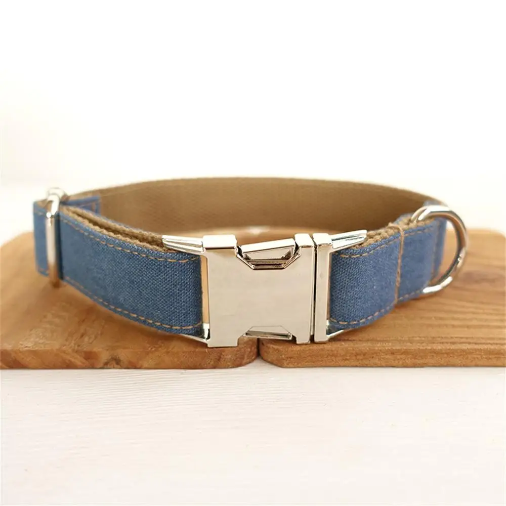 Индивидуальная ошейник для домашних животных индивидуальная именная табличка с идентификатором Регулируемая СВОБОДНАЯ ГРАВИРОВКА коричневые джинсовые ошейники для собак и кошек поводок